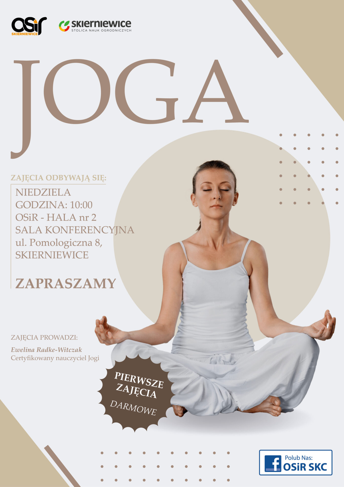 – 1 piętro. Prowadzenie: Ewelina Radke-Witczak – Certyfikowany Nauczyciel Jogi